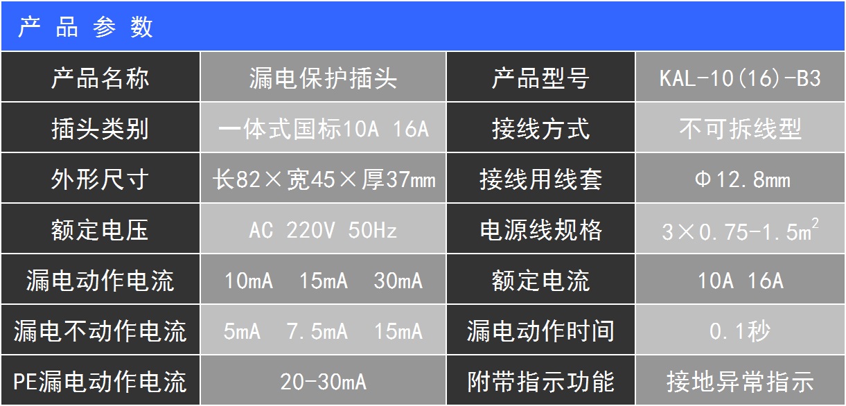 产品名称: B3三极可断开16A不可拆线漏电保护插头